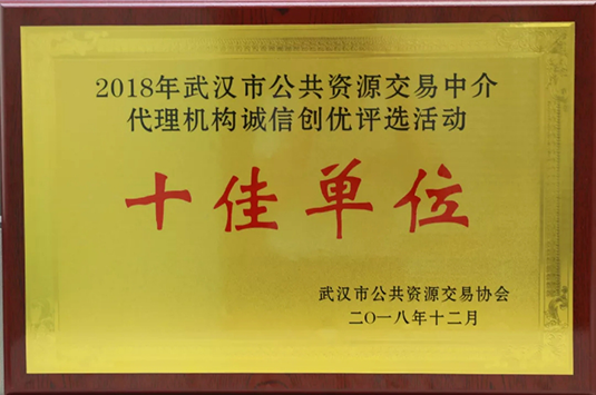 ——熱烈祝賀東方華太公司榮獲“武漢市2018年度公共資源交易中介代理機(jī)構(gòu)誠信創(chuàng)優(yōu)十佳單位”稱號